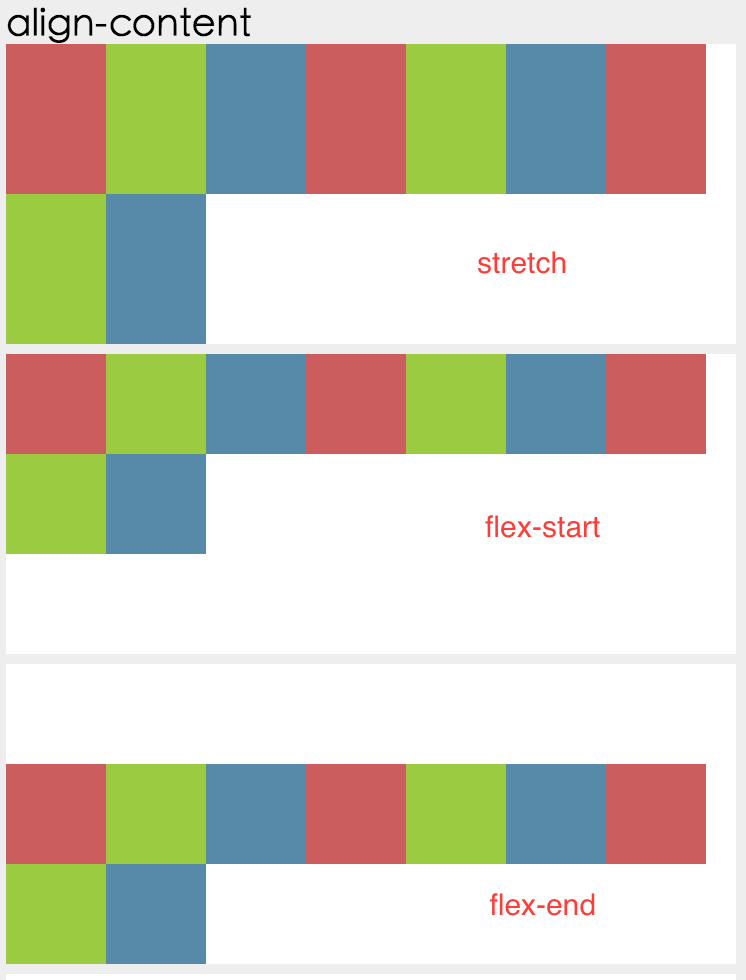 定義了多根主軸的對(duì)齊方式,如果項(xiàng)目只有一根主軸則不起作用,多根主軸一般會(huì)在主軸上折行時(shí)出現(xiàn):